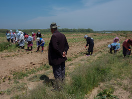 AZERBAIJAN, Lankaran. 2018. Talysh women work in a tea field...