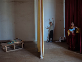AZERBAIJAN, Astara. 2018. Women seen during a play in the theatre...