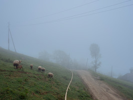 AZERBAIJAN, Lerik. 2018. Sheeps seen near the road of Zarikumecu...