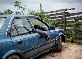 ZAMBIA. Kitwe. 2016. The insurance sticker on Jesus’ car. Jesus...
