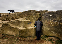 GB. North Yorkshire. 2015. David Shayler on Roseberry Topping,...