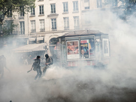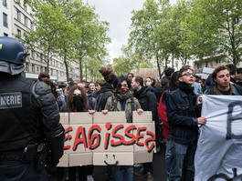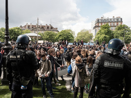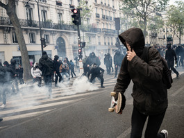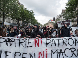 On the morning of April 27th Parisian high school students, along with far left activists, blocked the entrances to several schools throughout the city and staged a protest against both presidential candidates. Chanting “Not Macron, Not Le Pen,” they took to the streets. By 11 a.m. about 300 protesters had gathered at Place de la Republique marching to Bastille and then Boulevard Beaumarchais, throwing bottles and overturning trash cans until police used teargas to disperse the crowds.