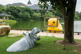 China. Guangzhou. 2016. Bust of Mao outside a restaurant.
