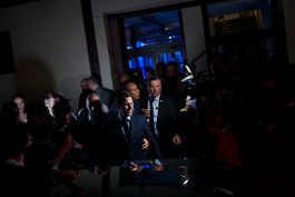 Emmanuel Macron has become an unlikely frontrunner for the first round of French presidential elections, which will be decided on Sunday, April 23. In August 2016 the former investment banker and François Hollande protégé resigned as the government Minister of Economics and Finance to launch his own political platform, “En Marche!” ("On The Move!"), and announced his candidacy for president shortly after. Magnum photographers have followed the political neophyte on the campaign trail, where he has refined his “neither left nor right” platform.