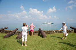 HONDURAS. Trujillo. 2018. Tourists visit Fort Santa Barbara.