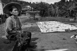 Malaysia. 2018. Sarwak. Indigenous land rights. Uday (48) peeling...