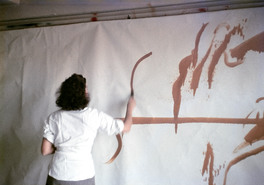 USA. New York City. 1957. Painter Helen FRANKENTHALER works on...