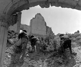 ITALY. Latium. Monte Cassino. 1948. Orphan girls playing amid...