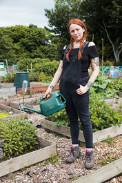 GB. Scotland. Aberdeen. Nether Loirston Growers Allotments. Karen...