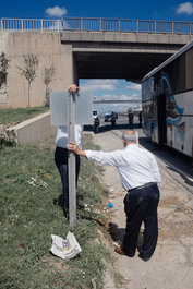 TURKEY. Istanbul. 2017. People stand near the sign at the entrance...
