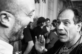UK. London. Magnum AGM. Party. Photographers Carl De Keyzer and...