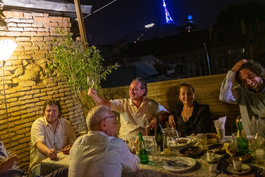 GEORGIA. Tbilisi. August 2017. Dinner with friends on the balcony...
