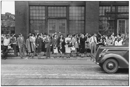 USA. Pittsburgh, Pennsylvania. 1950. Waiting for streetcar downtown....