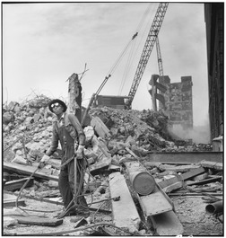 USA. Pittsburgh, Pennsylvania. 1950. Workman on wrecking project...