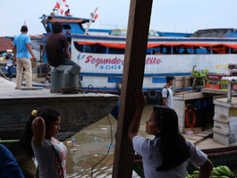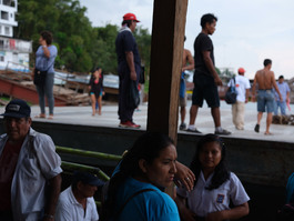 PERU. Iquitos, Lima. September 2017. Passengers await a ferry...