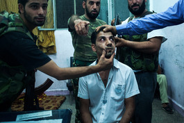 SYRIA, Aleppo. 2012. A captured man suspected of being a snitch...