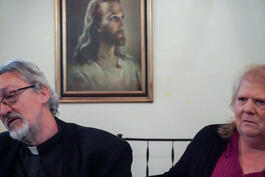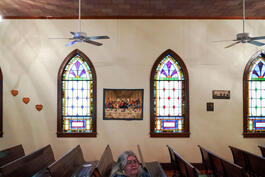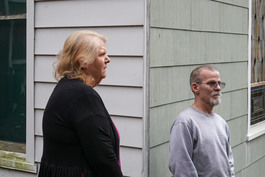 USA. Ashland, Pennsylvania. 2017. Janet Bowers with a church...