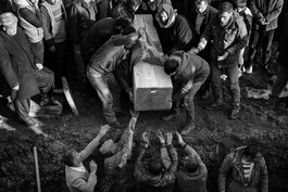 TURKEY. Sirnak. January 2016. People pray after the funeral ceremony...