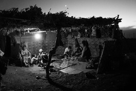 TURKEY. Sirnak. October 2016. A family stands in a tent in Cefhane...