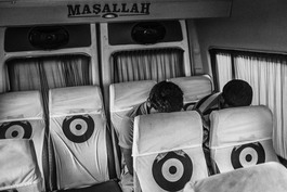 TURKEY. Suruc. September 2014. Syrians wait for hours in a car...