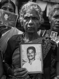 SRI LANKA. Vavuniya. January, 2018. Tamil women holding photographs...