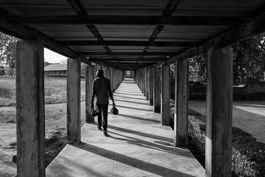 NIGERIA. Jos. 2018. A man walks in a corridor of Vom Juth Cocin...