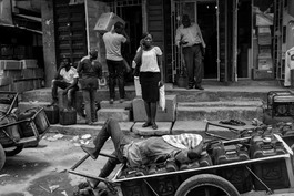 NIGERIA. Lagos. 2018. Conveyor man rests in front of the wholesale...