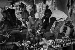 NIGERIA. Maiduguri. 2018. Street drug dealers stand near their...