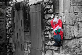 France. St. Rémy de Provence. Hanging Santa Claus.