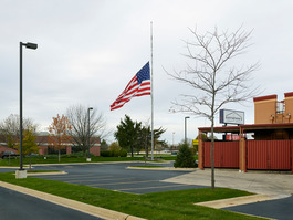 USA. Illinois. Rockford. Flag at half-mast. 6th November 2017....