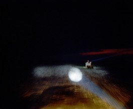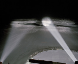 Finland. Bay of Bothnia. March 2002. Searchlight from icebreaker...