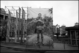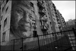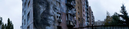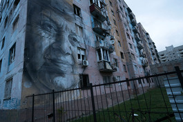 UKRAINE. Avdivka, Donbass. 2017. Mural of local school teacher...
