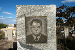 UKRAINE. Avdivka, Donbass. 2017. Tomb stone damaged in cross-fire...
