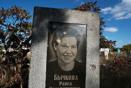 UKRAINE. Avdivka, Donbass. 2017. Tomb stone damaged in cross-fire...