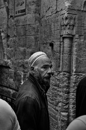 JERUSALEM. December 2017. A beggar in Damascus gate,
