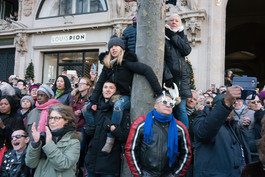 France. Paris. Hommage to Johnny Hallyday at the Madeleine. Listening...