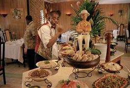 CAMEROON. Douala. Buffet in the dining room of the Meridien Hotel....