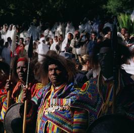 ETHIOPIA. Addis Ababa. Veterans wearing lionÕs mane headdresses...