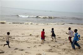 GHANA. ACCRA. 2010. Jamestown district, playing on the beach...