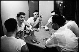 GB/USA. 1960. Off-duty crew members at a card game in the recreation...