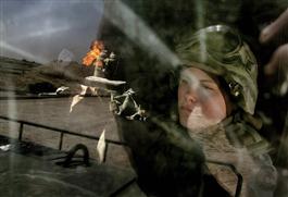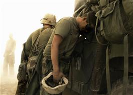 IRAQ. American soldiers on the battlefield enduring a sandstorm....