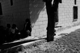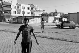 Akcakale, Turkey, 2019. People hide and watch near the border...