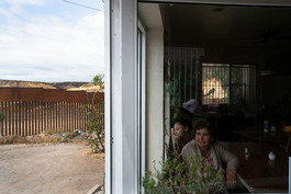 MEXICO. Tijuana. 2019. Family living along the wall.