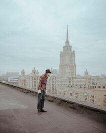 RUSSIA. Moscow. April 3 , 2020. On a rooftop with Hotel Ukraina...