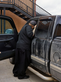 USA. Wyoming. Gillette. A group of Hudderites being photographed...