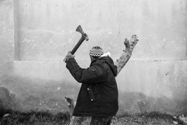Tunisia. Gafsa. Redayef. 2016. A man cutting a tree.