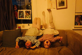 GB. London. April 20, 2020. Lorelei napping. Homeschooling in...