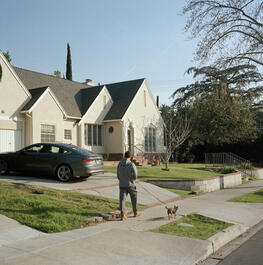 USA. Los Angeles. 2020. Dog-walker. Hancock Park.