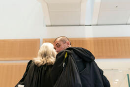 Gueorgui Pinkhassov photographed Pavlensky in 2017 while he was on trail in Paris for setting fire to the facade of the central bank.