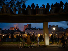The building’s spire and roof have collapsed but the main structure, including the two bell towers, has been saved. Officials say that the fire could be linked to the renovation work.